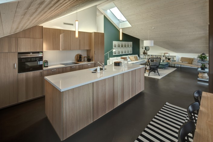 В каждую квартиру попадает много естественного света за счет большого числа окон. Также здесь установлена техника, потребляющая минимальное количество энергии. Холодильнику, к примеру, необходимо всего 17 ватт, что меньше потребления энергии настольной лампы. Если дому не будет хватать энергии, техники могут ограничить использование в ночное время стиральных машин.
