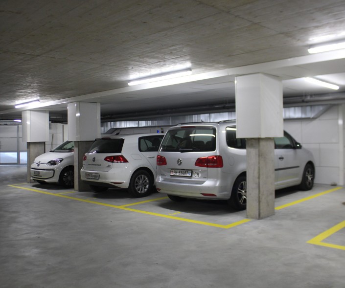 Общая площадь трехэтажного дома - 1000 квадратных метров. На цокольным этаже находится паркинг. Помимо личного транспорта, здесь есть и автомобили, которые можно взять напрокат. Транспорт здесь также экологичный: электромобиль и автомобиль на газу. Подстанция для зарядки установлена тут же. Газ для автомобиля получают от переработки отходов от домашнего хозяйства, килограмм отходов равен километру пути. Аренда автомобиля на весь день обойдется в 25 франков (8 тысяч тенге), что по швейцарским меркам сравнительно недорого.