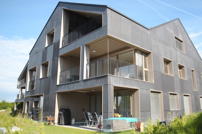 Энергонезависимый многоэтажный дом находится в коммуне Брюттен, в 30 минутах езды от Цюриха. На первый взгляд это немного грубое, серое здание напоминает обычное строение. Но это только на первый взгляд. Дом построен полностью из кирпича, с 28-сантиметровым слоем минеральной ваты и специальной вакуумной прокладки. Внешний слой состоит из светопоглощающих солнечных панелей.