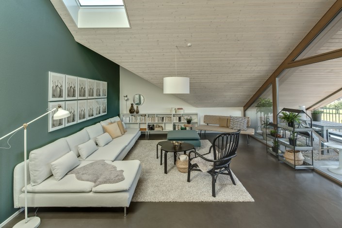 Площадь данной квартиры составляет около 180 квадратных метров. Температура в квартире 24 градуса. Сами швейцарцы предпочитают 20 градусов. Дом спроектирован таким образом, что система охлаждения забирает тепло и снова его перерабатывает. Поэтому здесь не принято открывать окна, дабы не отпускать тепло.