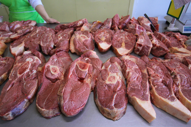 Здесь продается мясо (говядина, грудино-лопаточная часть) по 2050 тенге за кило, что на 13,5 процента ниже среднерыночной цены".