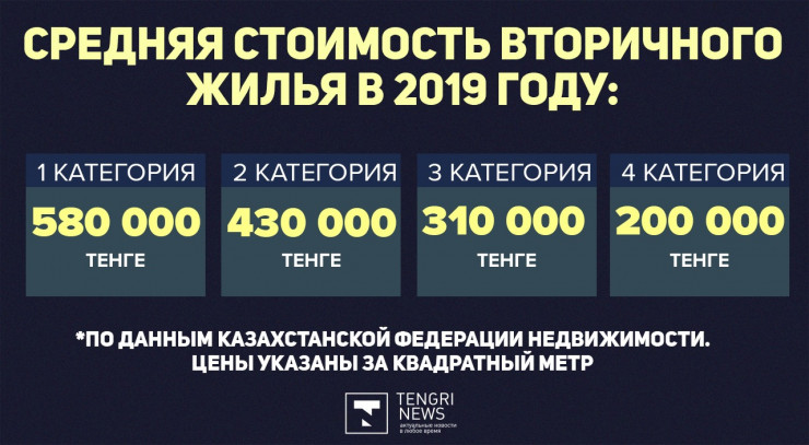 Казахстанская федерация недвижимости предоставила редакции средние цены на жилье в 2019 году.