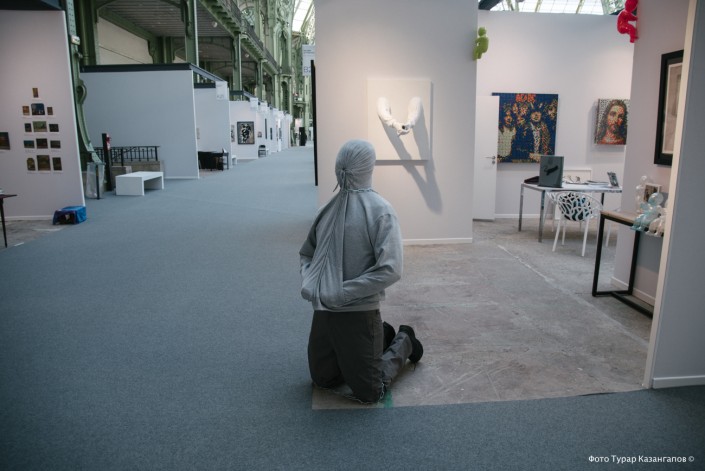 "Есть такой принцип в восточном боевом искусстве - в карате, в кунг-фу, что человек, двигаясь по физической линии, попадает в такой тонкий мир, где он начинает действовать с помощью изобразительного искусства, музыки или поэзии. Например, у самураев считалось высшим классом, когда он мог всех победить, но в то же время сочинить прекрасное стихотворение или нарисовать красивый иероглиф. Я культивировал в себе это, я хотел это сделать, потому что я 30 лет тренирую детей и продолжаю тренировать", - рассказывает Санжар, находясь в центре Парижа на международной выставке современного искусства.