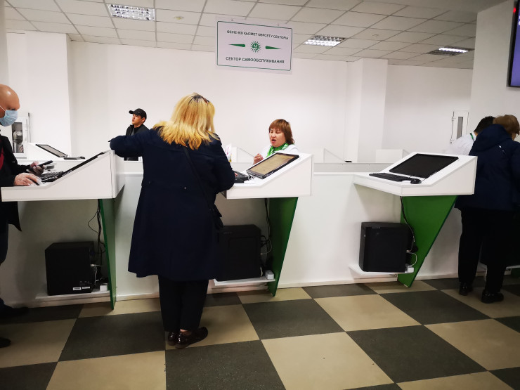 Мы беседуем с Мадиной, но иногда ей приходится отвлекаться на новых посетителей, которым нужна помощь.
