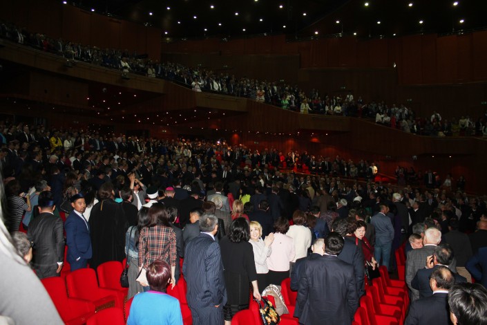 Все эти комичные фрагменты зрители, среди которых был и Нурсултан Назарбаев, и все видные политические и общественные деятели страны, сопровождали смехом и аплодисментами.