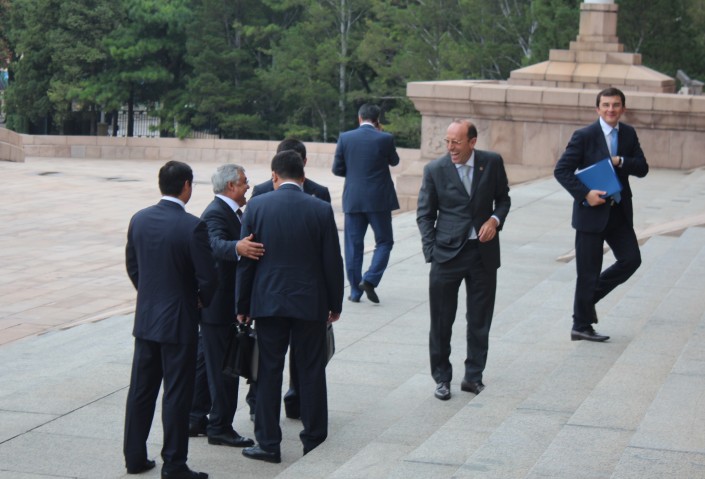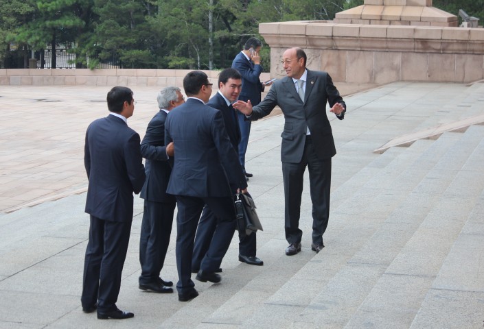 Во время государственного визита Нурсултана Назарбаева в Китай, который закончился 3 сентября, можно было заметить сразу четырех послов Казахстана в КНР. Но лишь один из них - действующий - Шахрат Нурышев. Все остальные - бывшие: Икрам Адырбеков, возглавляющий комитет по международным отношениям, обороне и безопасности Сената Парламента, мажилисмен Куаныш Султанов, входящий в комитет по международным делам, обороне и безопасности Мажилиса, и Нурлан Ермекбаев, являющийся помощником Президента и секретарем Совета безопасности.