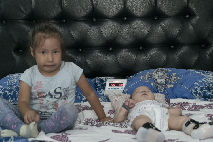 "Мою дочку зовут Айсезим, ей один годик, она болеет спинальной мышечной атрофией. Болезнь начала прогрессировать и повредила легкие, в результате полтора месяца назад Айсезим попала в реанимацию. Сейчас она не может самостоятельно дышать, не может сама есть, дышит только через аппарат искусственной вентиляции легких, если ИВЛ отключить, она вообще не сможет дышать", - рассказывает Сагыныш.