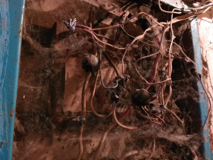 "Зимой идет пар из подвала, у нас здесь все в инее, провода замыкают", - рассказывают люди. Беспорядочно торчащая проводка здесь повсюду.
