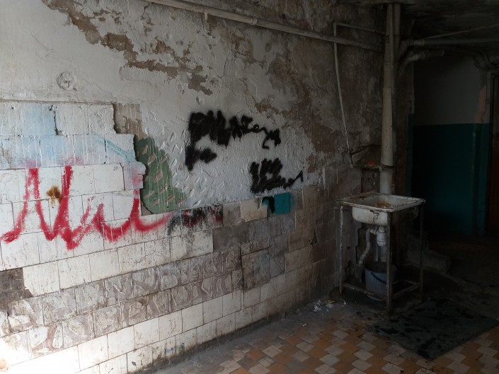 Общежитие в старой части Астаны. Заходим в подъезд, и первое, что бросается в глаза, - обшарпанная комната с коричневым умывальником. К нему подбегают дети и начинают мыть руки. Часть окна здесь закрыта кирпичами. Поднимаемся выше и на одном из этажей видим еще один умывальник, он засорен, под ним стоит ведро с мутной водой, она переливается через край. На стене зеркало, в котором отражение видно только наполовину. Пол мокрый. В коридорах общежития темно, лишь иногда горит желтая лампочка. Местами чувствуется резкий запах канализации. На каждом этаже есть туалет, он один на все 30 комнат. На вопрос, какая в доме главная проблема, жильцы советуют заглянуть в их уборную и сфотографировать. В подъезде много хаотично торчащих проводов, некоторые из них покрыты густым слоем паутины. "А еще у нас клопы и тараканы", - заявляет местная жительница. На стене надпись: "Ад". Таким корреспондент Tengrinews.kz Ренат Ташкинбаев увидел общежитие по адресу Янушкевича,12. Он пообщался с жильцами аварийного дома и узнал, почему не все из них хотят, чтобы их сносили.