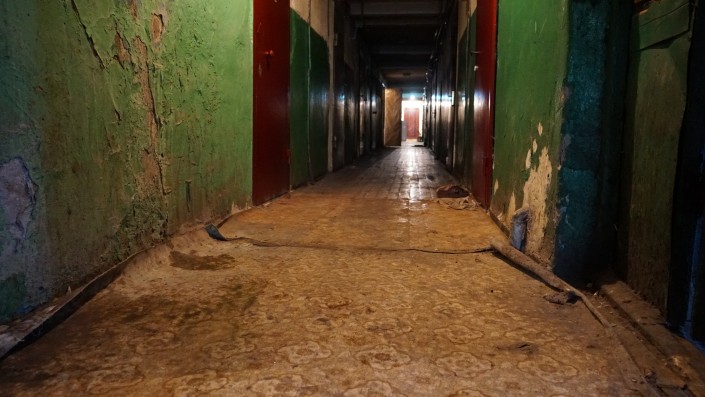 На каждом этаже этого общежития порядка 30 комнат. Все их жители пользуются одной раковиной.