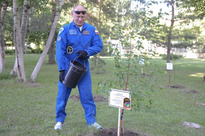 "При посадке россиянин рассказал сотрудникам гостиницы, что для него это не первое дерево. Дескать, у космонавтов есть такая традиция, везде, где они бывают, сажают деревья. Со слов Романенко, его саженцы растут в России, Казахстане и США. А его первое дерево растет на "Байконуре". Также он поделился, что его дочь хочет пойти по его стопам. А он, в свою очередь, пошел по стопам своего", - добавила сотрудница гостиницы.