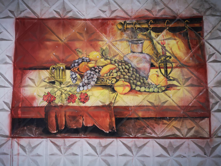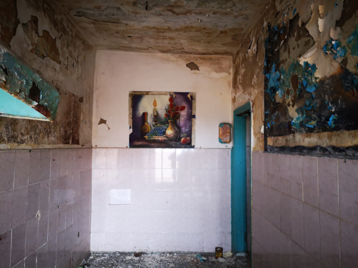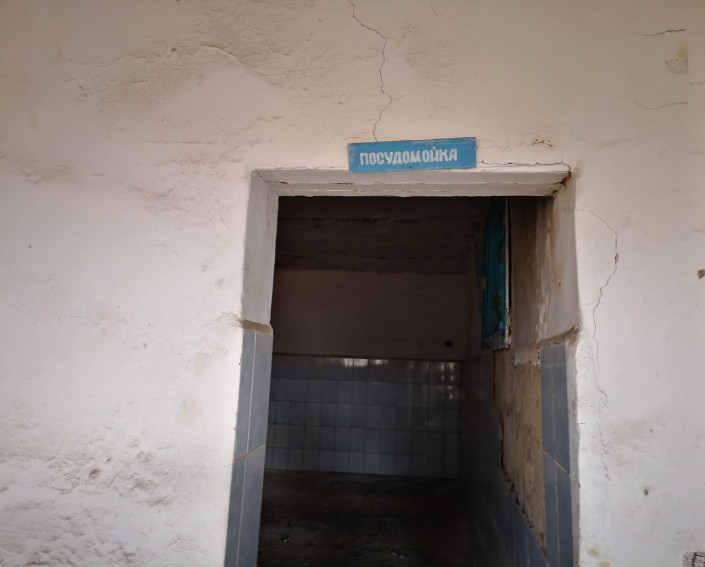 Этот натюрморт здесь не случаен. По всей видимости, мы забрели в бывшую столовую, где кормили осужденных.