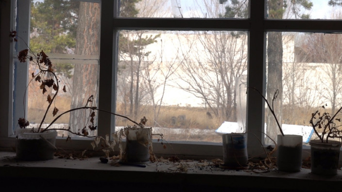 В соседней комнате на подоконнике стоят увядшие цветы. Их не поливали с 2014 года.