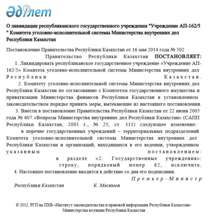 В сети можно найти постановление правительства о ликвидации этого учреждения, датированное 16 мая 2014 года.