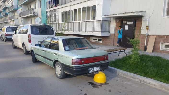 "Часто ставит машину прям у выхода из подъезда в ЖК "Асыл Арман". Установили полусферы, так он их сдвинул, чтобы поставить машину именно там, загородив выход из подъезда. Женщины с колясками и маленькими детьми обходят по траве и через бордюр", - жалуется очевидец.