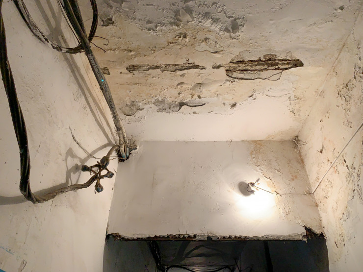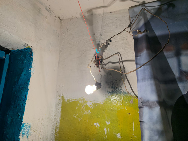 "Посмотрите, что у нас с электричеством, - говорит одна из жительниц верхний этажей, указывая на лампочку, окутанную проводами. - Вызываем всяких бродяг, платим им водкой, чтобы нас током здесь не поубивало".
