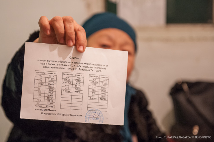 "Вот сейчас если бы эти 360 тысяч тенге легли на стол, тут бы идеальный был ремонт, просто идеальный. Если бы сейчас люди друг другу сказали: послушай, я плачу, давай и ты плати-ка; ведь если ты сейчас заплатишь эти деньги, то нам сделают ремонт. Ну неужели трудно это? Вот сейчас долг по общежитию составляет 700 тысяч", - объясняет Касенова.