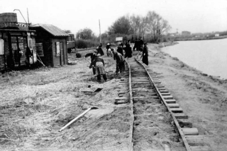 Реконструкция дороги (перешивка колеи). Фото из архива ДЖД. 1958 год / dzd-ussr.ru