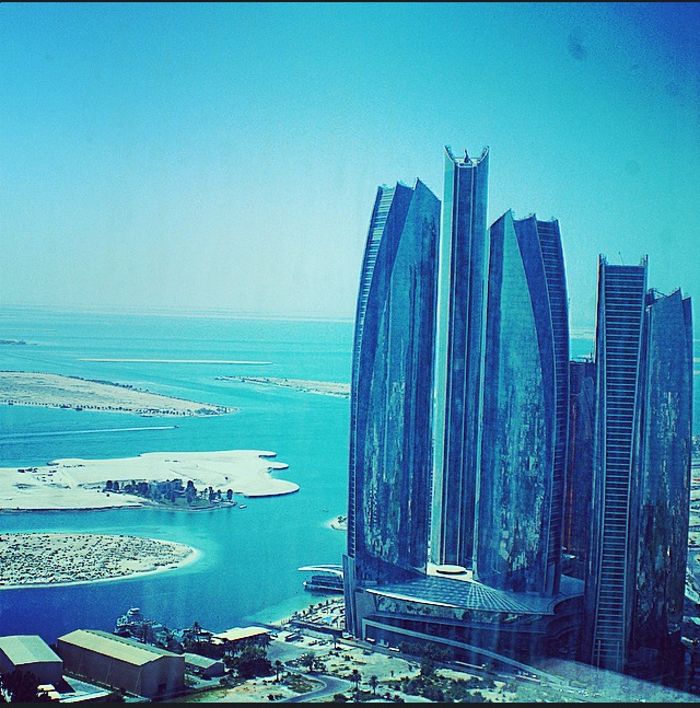Кстати, об отелях - за время, проведенное в Абу-Даби, наша делегация успела посетить четыре разных отеля. Сразу после прибытия в столицу ОАЭ нас разместили в Jumeirah. Отель расположен в комплексе Etihad Towers. Данный комплекс впечатляет своими масштабами и считается самым высоким в городе. Он объединяет в себе пять башен - это сам пятизвездочный отель, офисная башня со смотровой площадкой на 74-м этаже и три жилые башни. Оказавшись здесь, появилось непреодолимое желание обследовать это впечатляюще огромное сооружение. Сам отель имеет свой небольшой пляж, два бассейна, а также супермаркет и бутики на цокольном этаже.