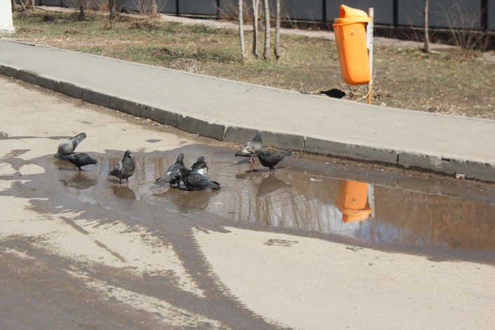 А голуби тем временем проводили время у луж.