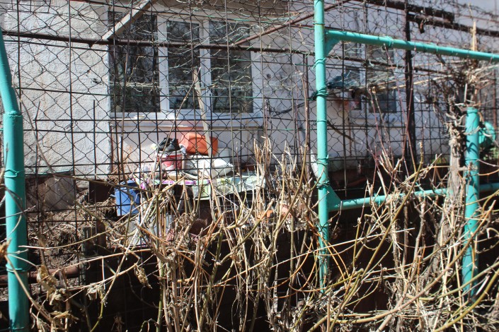 За забором видны канистры, пластиковые тары и кастрюли, которые местные жители, по всей видимости, подготовили к лету.