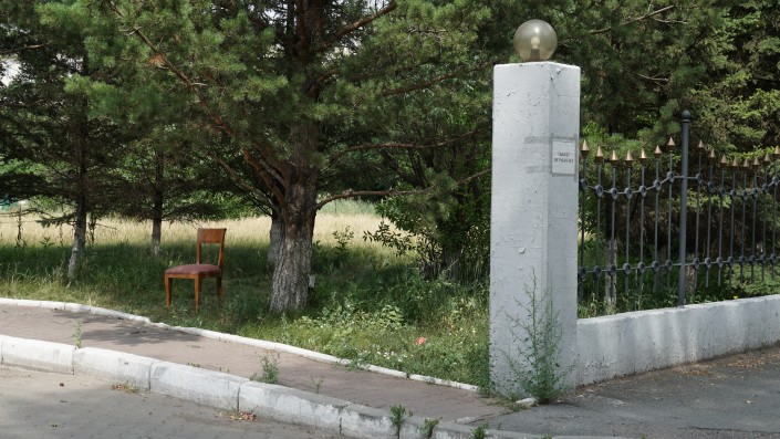 Тем не менее охранник здесь есть. Он сидит напротив, на стуле в тени.