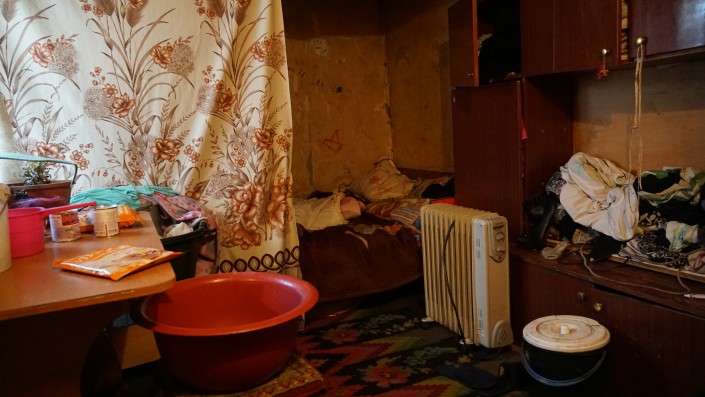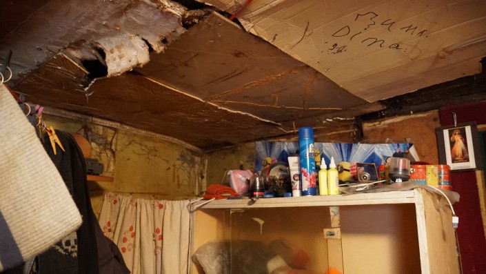 "А перед тем как в сарай пойти жить, мы комнату снимали в саманке за 25 тысяч, холодную, там мыши на лицо падали. А потом, в мае, уже невозможно было: насекомые, пол проломленный, туалет под окном течет, вонь такая стоит - ужас. Я говорю, пойдем лучше в сарай, чем 25 тысяч за такое платить. И вот, детям кровать поставили, а сами на полу, на угле постелили тряпки какие-то, вот так и жили, даже не помыться, все грязные. Да это и не передать", - вспоминает Алла Вячеславовна.