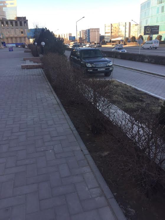Парковка на тротуаре в Астане по улице Атырау.