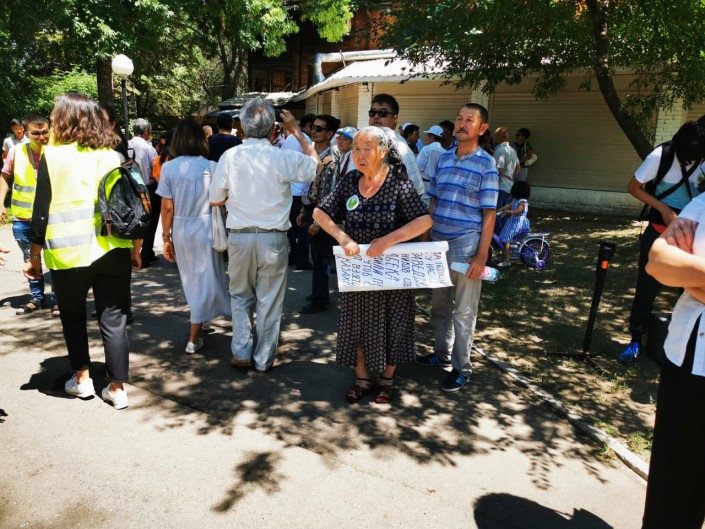Сағат 12.00-де ұйымдастырушылар да, жиналғандар да бір ауыздан тарады. Ешкім де айғай шығармады, даудан аулақ болды. Құрастырылған мінберді бөлектеп, аппаратурасын жинады. Арада "тарқаймыз" деген ұйымдастырушыларды да көрдік. Әуелден мінберген жақын орынды сайлап алған қариялар жағы дайындап әкелген үнқағаздардан ептеп қайта орап жатты. Суреттегі кейуананың үнқағазды ұқыппен, асықпай тұрып орағанына қарап, әлі де бұл жиналғандардың айтары бар, сондықтан заңды митингілер әлі де жалғасады деген ой келді.