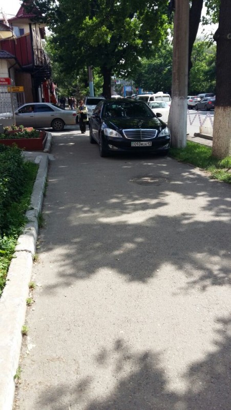 Водитель Mercedes в Алматы, также, по всей видимости, очень спешил и оставил своего железного коня прямо на тротуаре в районе улиц Жарокова, ниже Тимирязева.