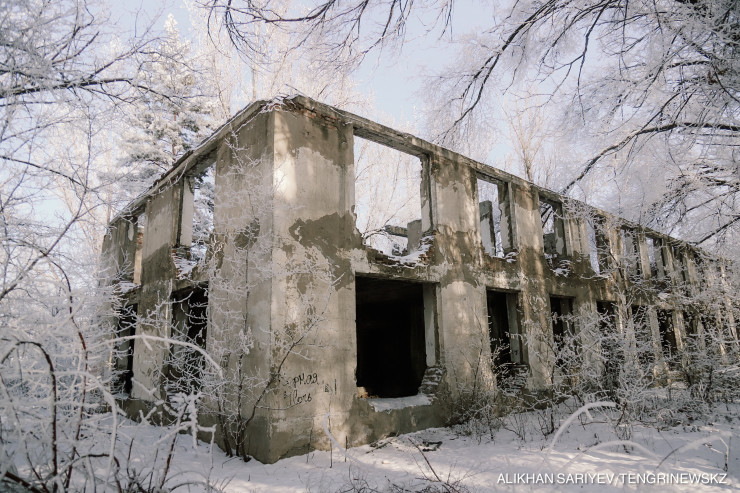 Больше всего нас удивило это мрачное заброшенное здание в поселке. Как оказалось, это бывший детский садик. В постсоветском настоящем для него, увы, не нашлось места.