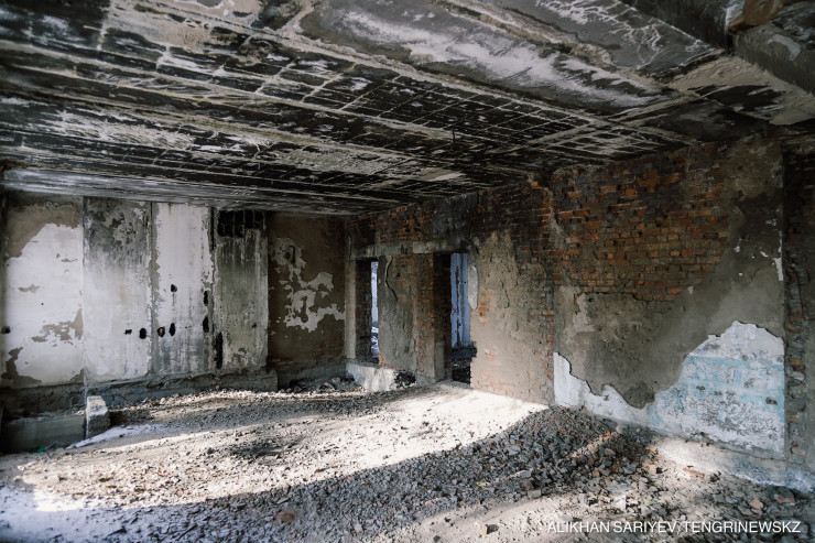 После развала Союза выставили на аукцион, продали за 35 тысяч. Что, сытые стали с этими деньгами? Крышу сняли, а стены разобрать не получилось - здание оказалось слишком крепким. Это же советская постройка. И сейчас судьба его зависла в воздухе".