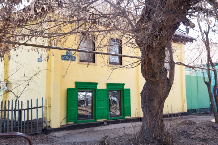 Дом купца Никиты Пугасова находится по Богенбай батыра, 70, это буквально в паре шагов от популярной в народе шашлычки с очень демократичными ценами. Сегодня этот дом поделен на трех хозяев, что видно даже по покраске дома. В двух из них одно время находились типографии, еще одна - по всей видимости, жилая.