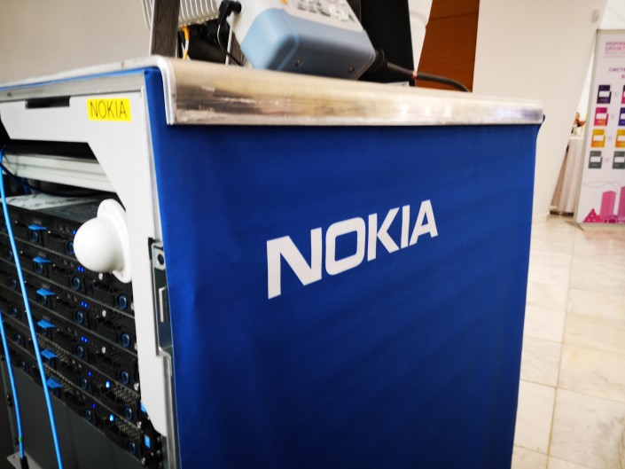 Название "Нокиа" можно было заметить на специальном стенде "Казахтелекома", это был презентационный стенд с примером того, как будет работать в Казахстане сеть пятого поколения 5G.