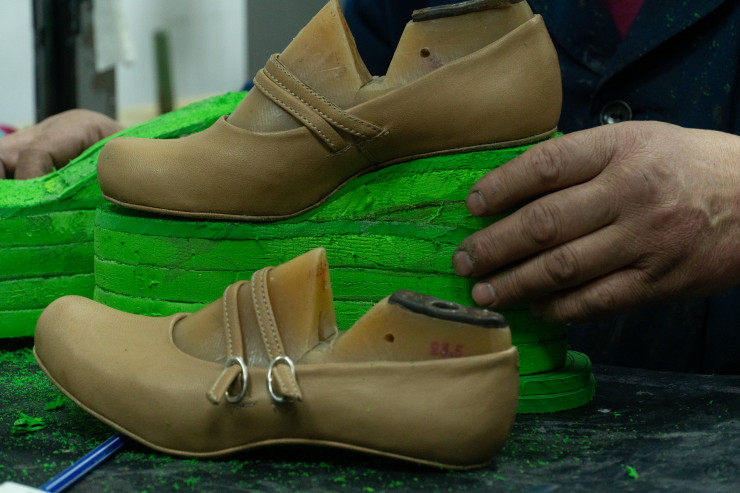 Вот, например, сейчас мастер выполняет один из сложнейших заказов за свою карьеру - сценические туфли. Задача перед Мухтаром Мухаметкаримовичем стоит непростая: с одной стороны, нарастить очень высокую платформу, с другой, сделать это так, чтобы пара смотрелась естественно и гармонично.