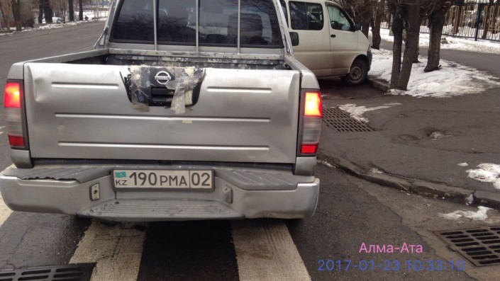 Ну и в завершение - борьба с любителями парковки в неположенных местах. На пересечении улиц Шевченко и Байзакова очевидец в Алматы сфотографировал Nissan, припаркованный прямо на пешеходной "зебре".