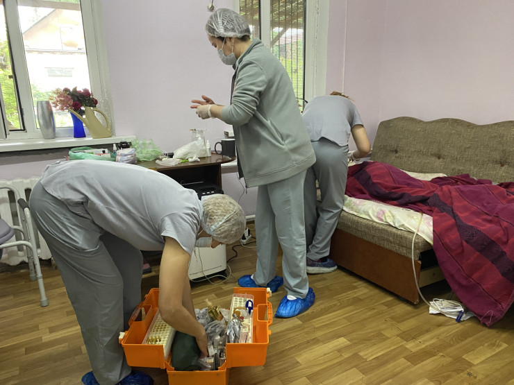 В день бригада паллиативной помощи осуществляет от 23 до 27 вызовов. Всего в мобильной бригаде 2 врача, 3 медсестры и 1 медбрат, 2 соцработника, психолог, диспетчер, санитарка и водитель.