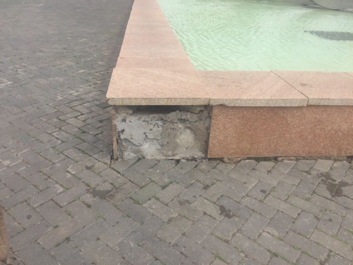 Далее наш маршрут продолжился в направлении круглой площади. Но не успели мы начать свой путь, как архитектор заметил обвалившуюся плитку около фонтана. Шутя, Асиф Хан назвал увиденное современным искусством. По его мнению, такое происходит везде, по всему миру.