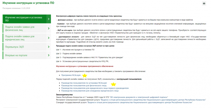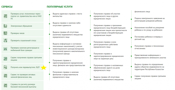 • Я зашел на сайт Egov.kz и выбрал из списка сервисов на главной странице: "Получить или перевыпустить ЭЦП".