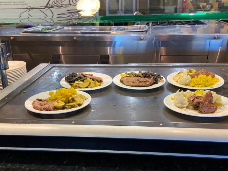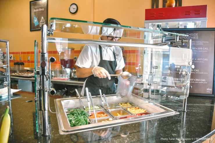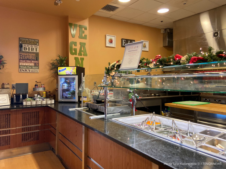 "Это, конечно, что-то... - вспоминает наш фотограф. - Язык не поворачивается назвать это столовой. Я бы сравнил это с едой из пятизвездочного отеля. Большой выбор готовых блюд, но можно еще попросить сделать яичницу, а еще есть бургеры, мороженое, смузи. Есть даже отдельное меню для вегетарианцев".
