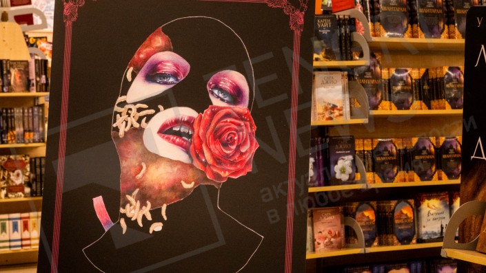 Фоторепортеры и журналисты за 2 часа ожидания, не в пример поклонникам снаружи, несколько приуныли. Коротали время за рассматриванием антуража и полок с новинками в литературе, кино- и игровой индустрии. Ждать приходилось только ради 5 минут съемки...