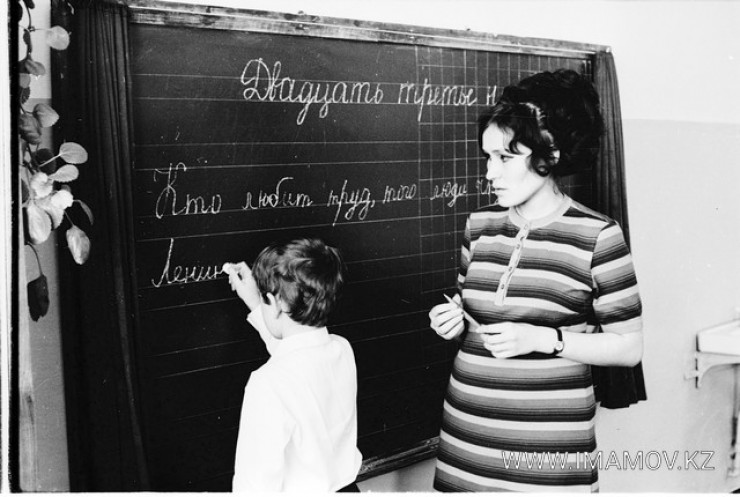 1974 год. Репортаж из школы № 14. Учитель на фото - одна из дочерей Нурмухамата Имамова. К несчастью, она трагически погибла зимой 1983 года.