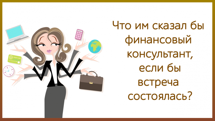 Наш финансовый консультант - инвестиционный консультант, личный финансовый советник Ольга Эм. Раньше она работала в инвестиционных компаниях, а последние два года консультирует состоятельных клиентов в сегменте wealth management (управление благосостоянием). И она нисколько не удивлена тем фактом, что оба наших героя соскочили: