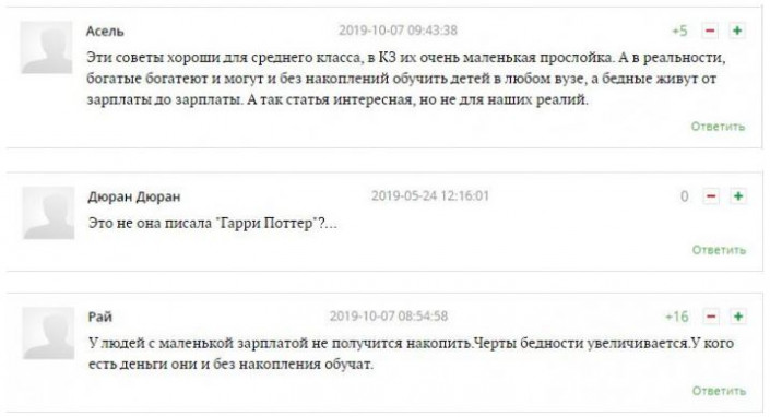 На нашем сайте регулярно выходят материалы по финансовой грамотности, где специалисты делятся собственным опытом накопления и инвестирования денег. Не просто теория, а личный опыт, проверено на себе. Однако под каждой публикацией комментаторы Tengrinews.kz оставляют негативные комментарии, суть которых, что все эти финансовые секреты работают только для богатых, у обычных людей не то что копить, а даже закрыть кредиты не получается.