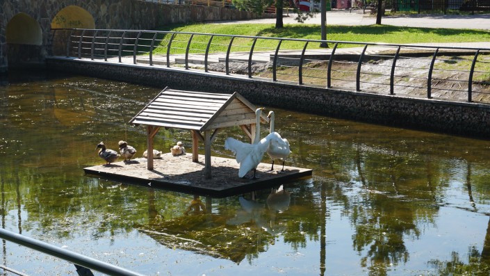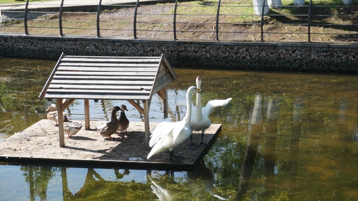 "Лебеди, получается, у нас все равно в неволе, хоть и вода здесь натуральная. Они не летают у нас, мы же им крылья купируем постоянно, чтобы не взлетели, потому что потом мы их из Ишима не выловим. Раньше хорошо было, они выходили, гуляли, травку щипали на природе, а сейчас только пруд и островки", - говорит она.