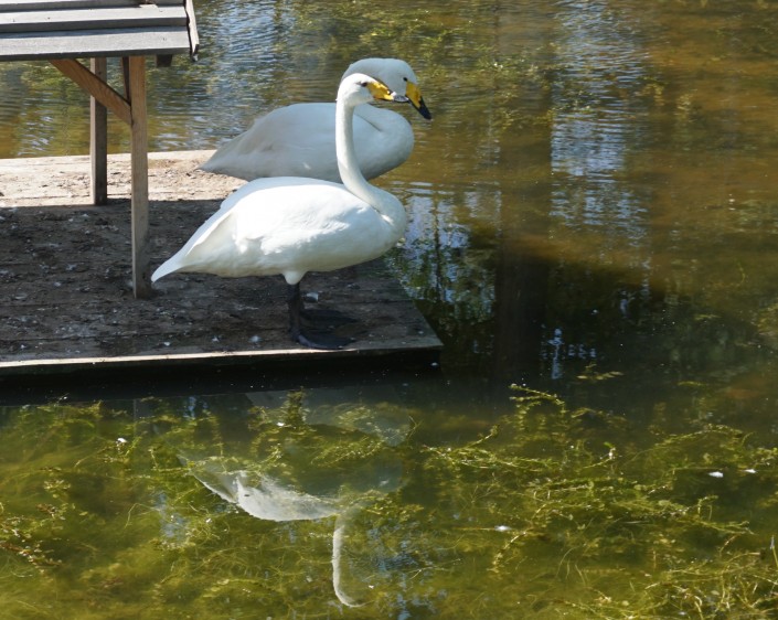 Съев очередную порцию травы, лебедь закрывал глаза и так и сидел, как будто в полудреме.