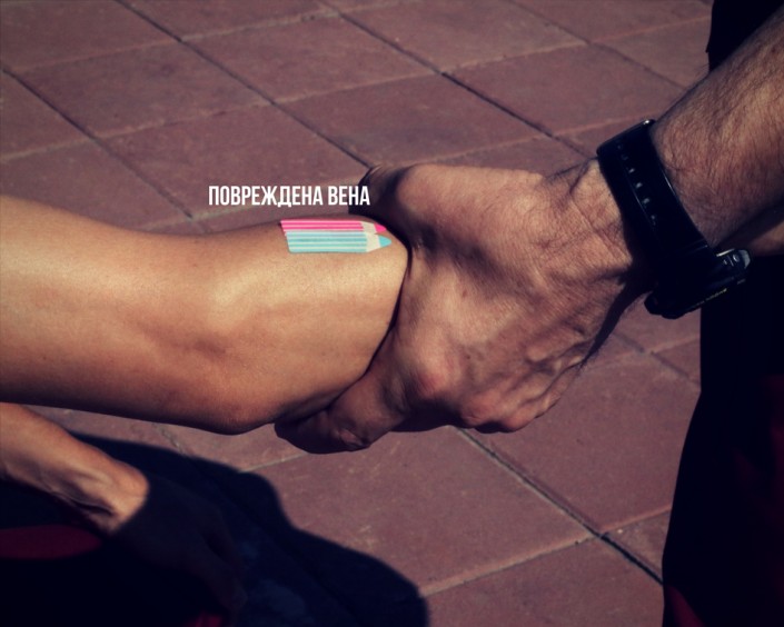 4. Записываем на самом жгуте, материале, либо на коже пострадавшего, время - во сколько мы его наложили. Это важный момент для бригады скорой помощи, которая будет спасать пациента дальше: жгут можно накладывать только на 40 минут, не больше. Иначе из-за нехватки кровоснабжения в конечностях начнется процесс отмирания тканей.