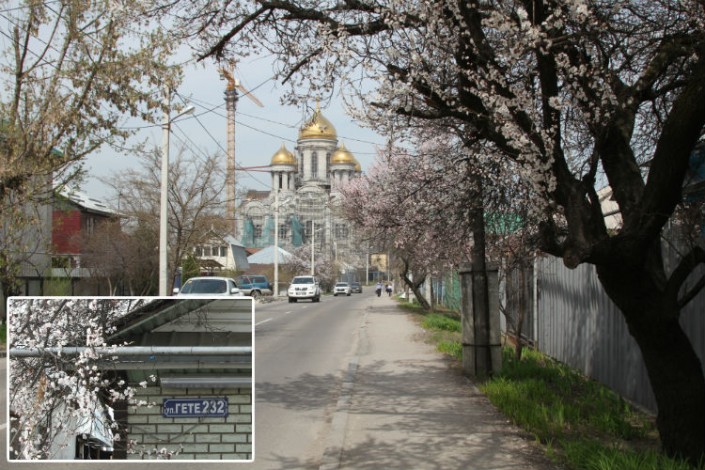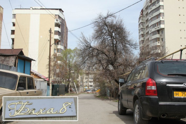 Среди магистральных улиц, загруженных пробками, затерялся небольшой переулок имени Иоганна Себастьяна Баха. Небольшой масштаб никак не влияет на концентрацию творческого духа. На одном из домов висит табличка, выполненная в классическом стиле. "Если всмотреться, можно разглядеть, что это шифр. На табличке написано "П Баха 8", что означает "Переулок Баха, 8". Эту табличку сделал мне друг, который работает в рекламном агентстве, он достаточно творческий человек. За последние лет 20 наша улица ни капли не изменилась. Здесь нет шума от автомобилей, птички щебечут. Очень хорошо, как на даче!" - рассказал хозяин дома Нурлан.