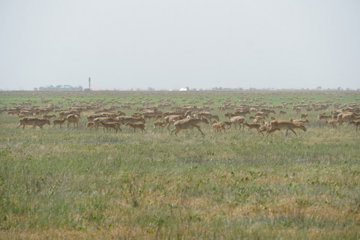 Сайгаки рядом с селом Казталовка ЗКО. Одно это стадо насчитывает десятки тысяч особей.
