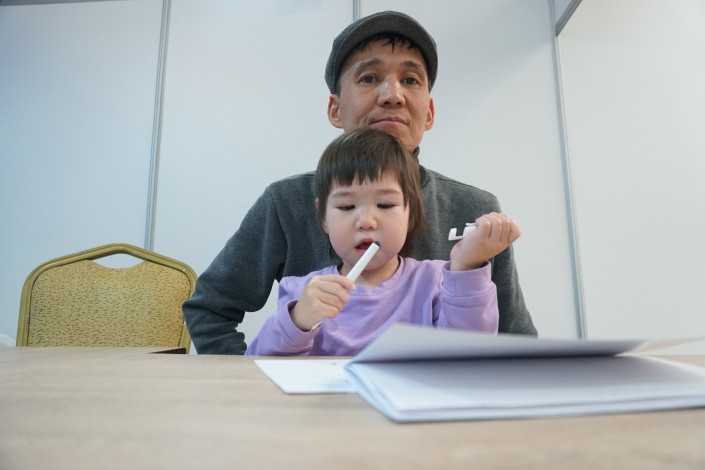 Его зовут Рысмахан, а его трехлетнюю дочь - Инжу. Мужчина говорит, что мать девочки ушла из семьи и он с двух месяцев воспитывает ребенка один. Бывают моменты, признается Рысмахан, когда ему не хочется жить. Отец-одиночка пришел на встречу с акимом Астаны, чтобы рассказать чиновнику о своих проблемах.